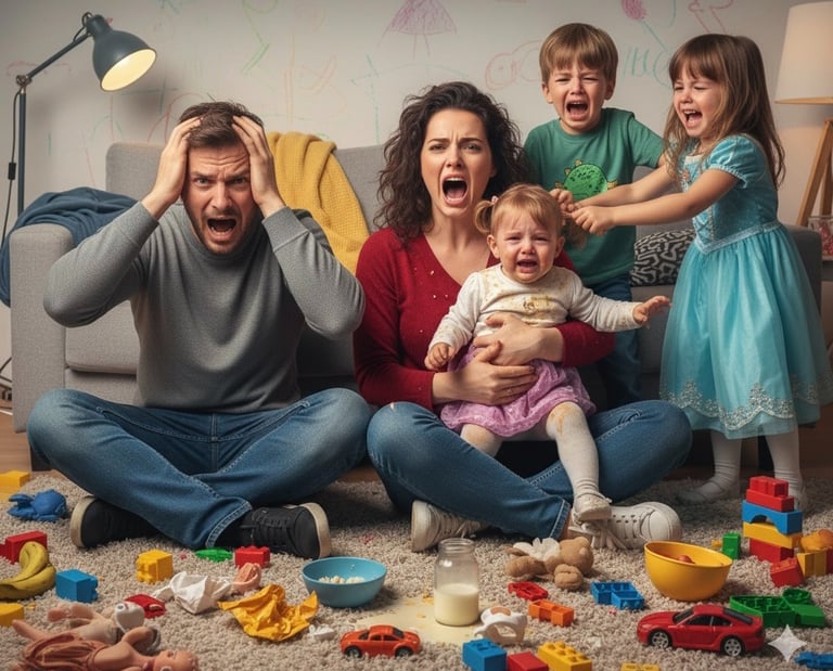 Gritos, correria, casa bagunçada, refeições improvisadas.